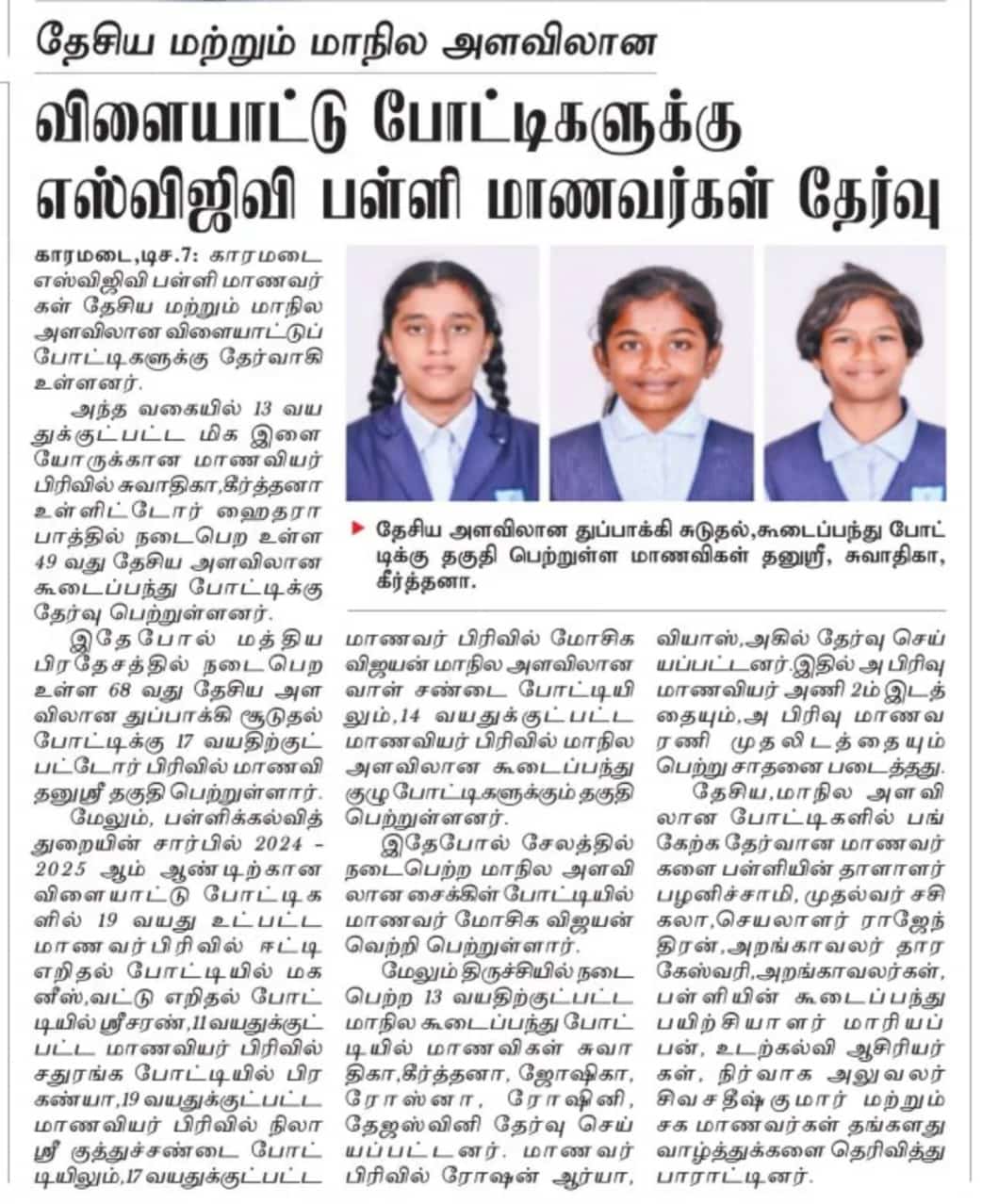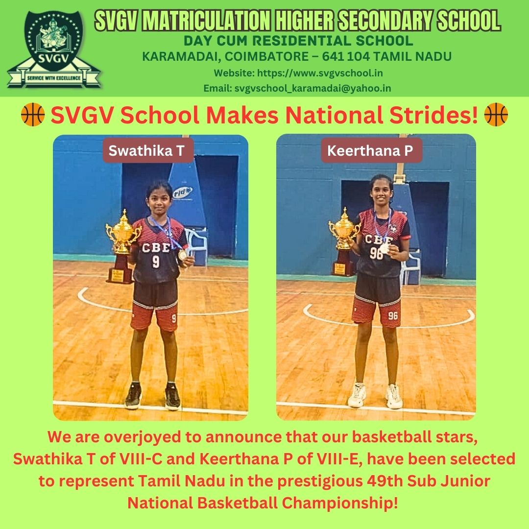 We are overjoyed to announce that our basketball stars, Keerthana P of VIII-E and Swathika T of VIII-C, have been selected to represent Tamil Nadu in